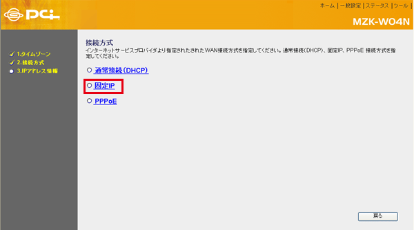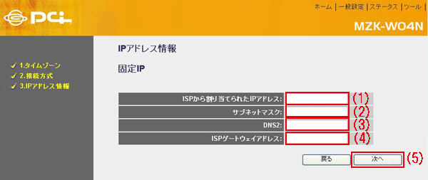 (1)プロバイダから指定されたIPアドレスを入力します。