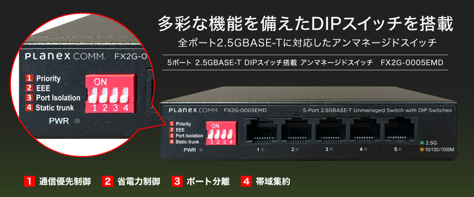 5ポート 2.5GBASE-T DIPスイッチ搭載 アンマネージドスイッチ