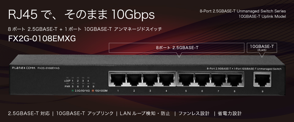 8ポート2.5GBASE-Tと1ポート10GBASE-Tを搭載したアンマネージドスイッチ「FX2G-0108EMXG」新発売