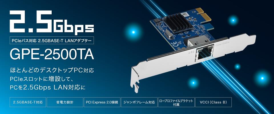 最大2.5Gbps対応 PCI Express接続LANアダプター「GPE-2500TA」新発売