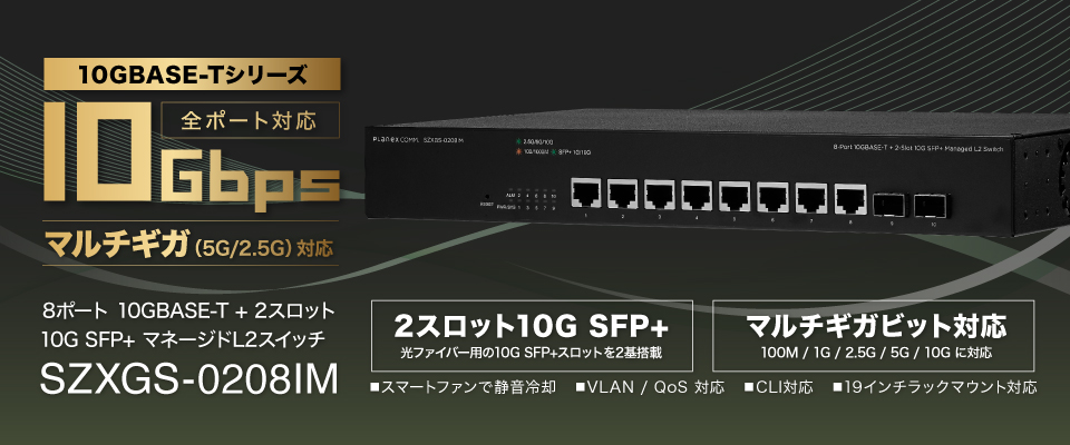 8ポート10GBASE-Tと2スロット10G SFP+を搭載したマネージドL2スイッチ「SZXGS-0208IM」新発売
