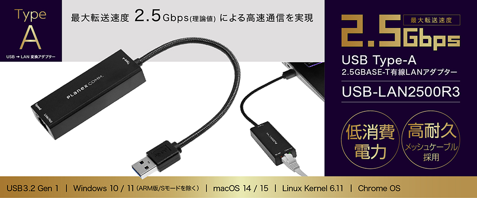 USB Type-A接続 2.5Gbps対応USB有線LANアダプター「USB-LAN2500R3」新発売