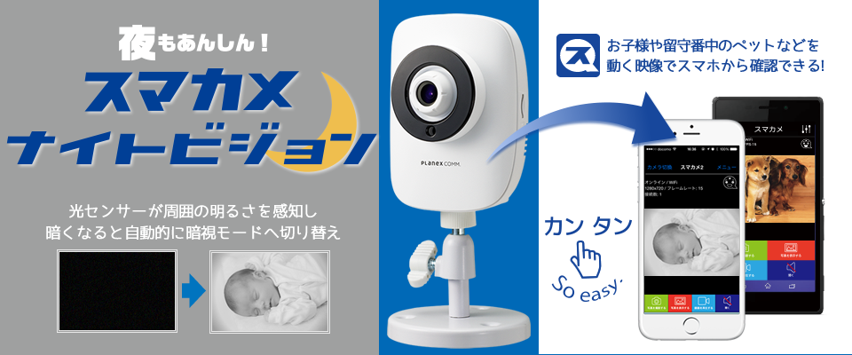 プラネックスの製品の中で現在非常に注目を浴びているのが「カメラ一発シリーズ」「スマカメシリーズ」などのネットワークカメラです。 -