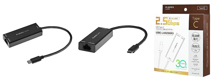 プラネックスコミュニケーションズ株式会社は、REALTEK社製2.5GbEコントローラーチップ「RTL8156B」を搭載した2.5Gbps対応USB有線LANアダプター「USBC-LAN2500R3」を発売します。USB Type-Cポートを備えたパソコンやタブレットに接続するだけで、手軽にマルチギガビット有線LAN環境へアップグレード可能です。