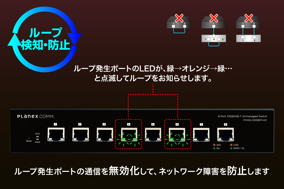 - ネットワークトラブルを防ぐループ検知機能を搭載