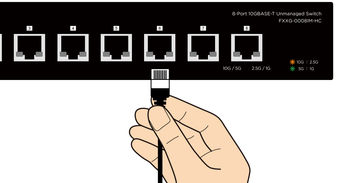 - 8ポートすべてが10GBASE-Tに対応し、最大10Gbpsの高速通信を実現
