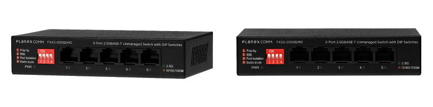プラネックスコミュニケーションズ株式会社は、多彩な機能を持つDIPスイッチを搭載し、全5ポートが2.5GBASE-Tに対応したアンマネージドスイッチ「FX2G-0005EMD」を発売します。