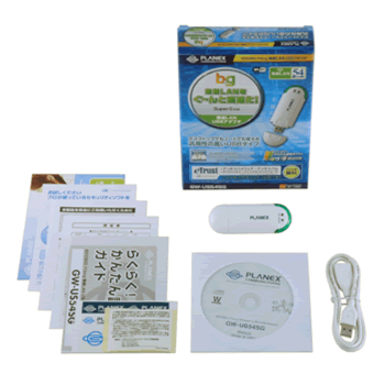 GW-US54SG本体、USB延長ケーブル(1m)、らくらく!かんたん設定ガイド、CD-ROM(マニュアル&ドライバ&ユーティリティ)、保証書、安全に関する説明書、eTrustのご案内 |