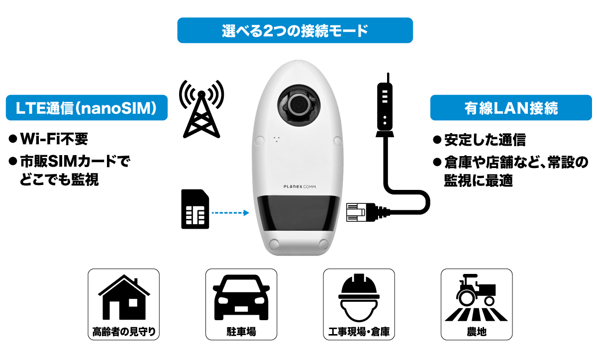 - 本製品は、防犯用途として作られたものではありません。防犯用に設置した場合に発生した問題については、弊社は一切の責任を負いかねますので、予めご了承ください。