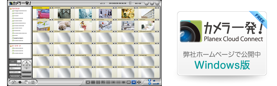 Windowsパソコン専用のアプリケーションで最大36台のカメラの映像を一画面で表示できます。