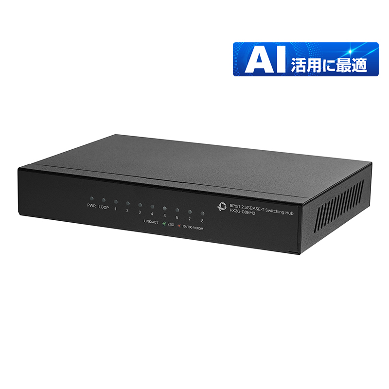 本製品は「FX2G-08EM」の後継機で、2.5GbEに対応したMedia Access ControllerチップにRealtek社 RTL8373、PHYチップにRealtek社 RTL8224を採用し、従来機より大幅な低消費電力、低発熱を実現しました。
