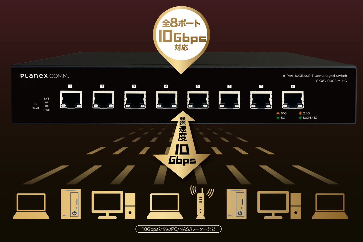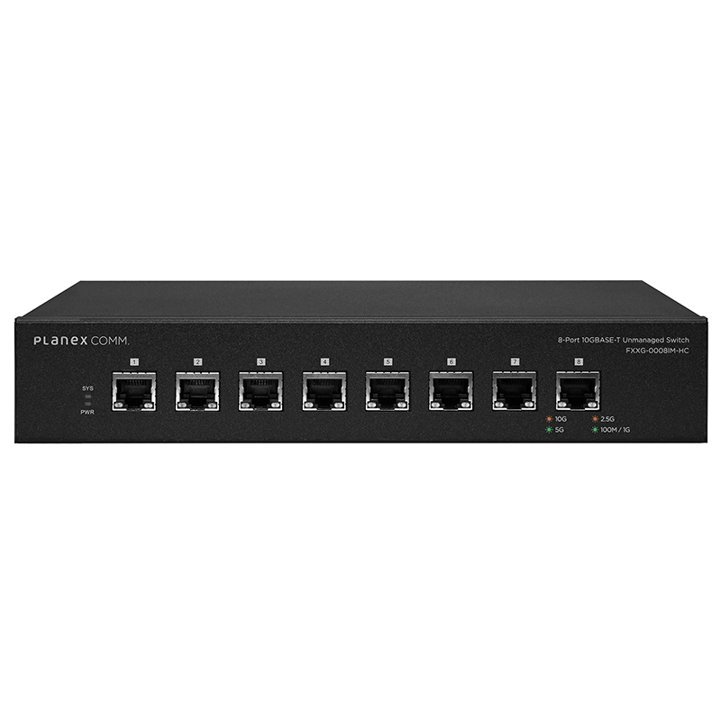 「FXXG-0008IM-HC」は、全ポート10GBASE-T対応の8ポートアンマネージドスイッチです。