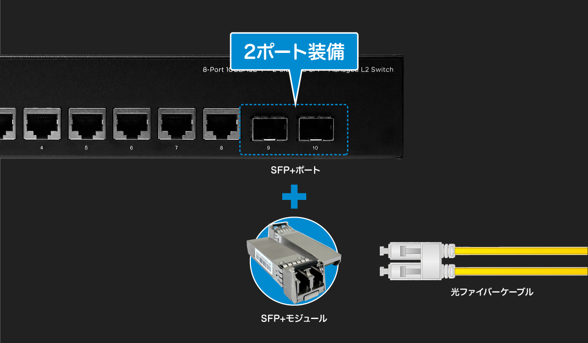 | ポート構成 | RJ-45ポート×8 SFP+×2 |