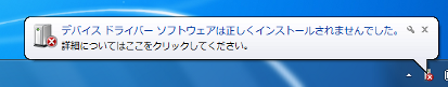 本製品をパソコンに接続してください。タスクバーに以下のメッセージが表示されます。 ※この時点ではインストールできませんが問題ありません。