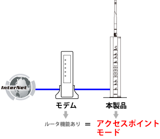 本製品には、ブロードバンドルータとして使用する「ルータモード」とアクセスポイントとして使用する「アクセスポイントモード」があります。 以下を参考にして、お客様が使用するモードを確認してから設定を始めてください。