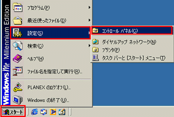「スタート」→「設定」→「コントロールパネル」をクリックします。