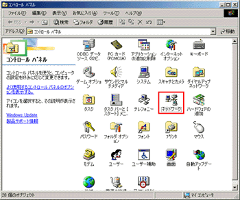 「コントロールパネル」が表示されます。「ネットワーク」をダブルクリックします。