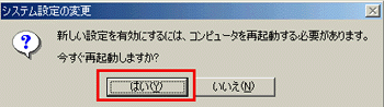 再起動を要求するメッセージが表示されましたら、[はい]をクリックして、パソコンを再起動します。