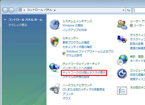 「ネットワークの状態とタスクの表示」をクリックします。 ※クラシック表示画面の場合は、「ネットワークと共有センター」をクリックします。