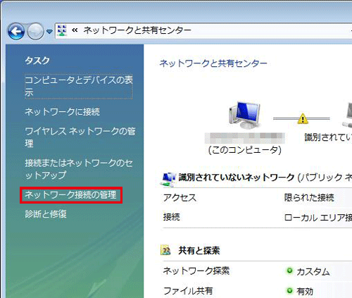 「ネットワーク接続の管理」をクリックします。