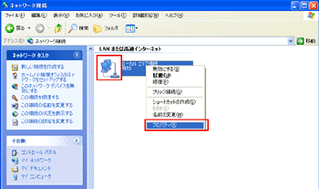 「ローカルエリア接続」を右クリックし、「プロパティ」をクリックします。