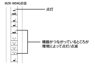 ※ケーブルが接続されているポートに対応したLEDが点灯または点滅します。