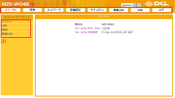 ▼設定画面のトップページが表示されます