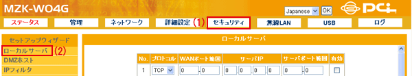 (2)「WANポート範囲」にインターネット側から見た送信先ポート番号を入力します。