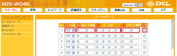 (4)「サーバポート範囲」にパソコンが受信するポート番号を入力します。