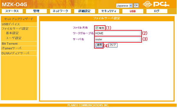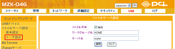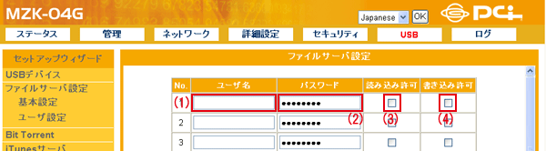 ここで設定した「ユーザ名」と「パスワード」は、ファイルサーバにアクセスするときに必要になります。