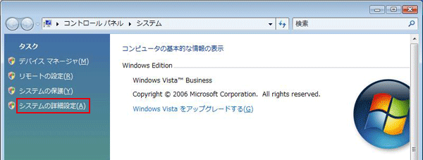 「システムの詳細設定」をクリックします。