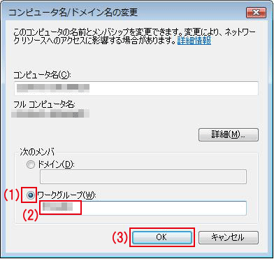(2)お客様が決めたワークグループ名を半角英数文字で入力します。