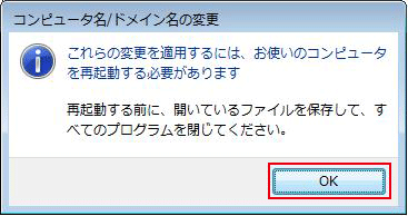 「コンピュータ名/ドメイン名の変更」が表示されます。