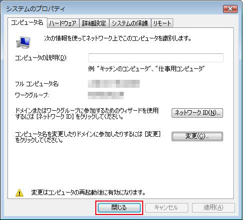 「システムのプロパティ」に戻ります。