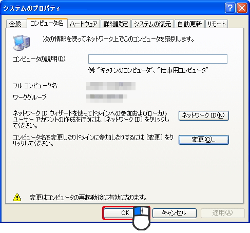 「システムプロパティ」ウィンドウにもどります。
