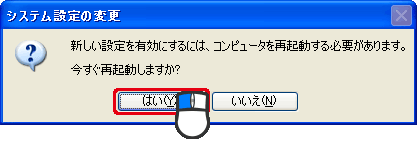 [OK]をクリックしてパソコンを再起動します。