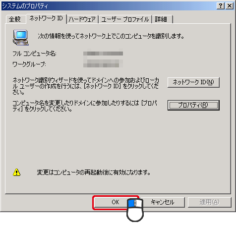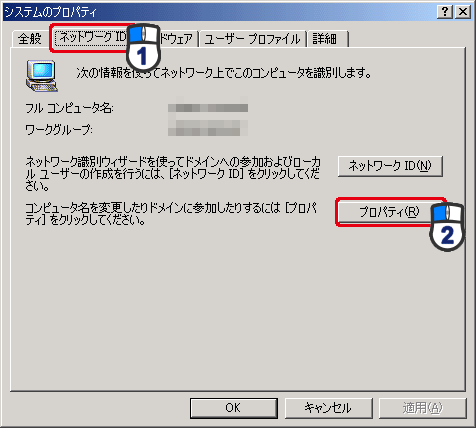 (1)[ネットワークID]タブをクリックします。