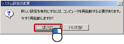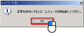 [OK]をクリックしてパソコンを再起動します。