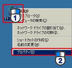 デスクトップ上の「マイネットワーク」アイコンを右クリックし、「プロパティ」をクリックします。