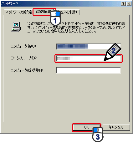 (2)「ワークグループ」に、お客様が決めたワークグループ名を半角英数文字で入力します。