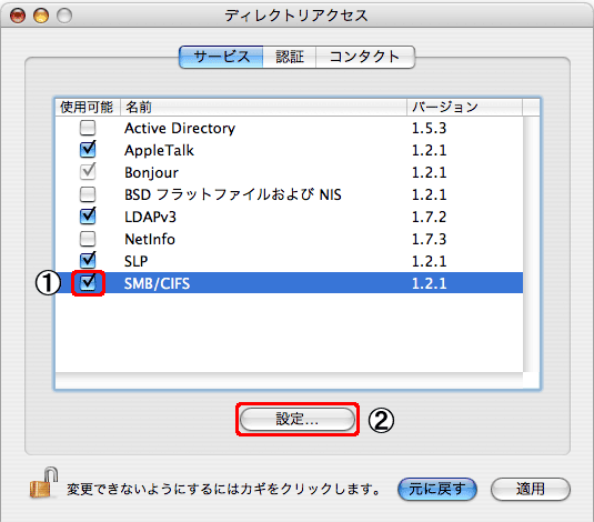 「SMB/CIFS」にチェックを付け、[設定]をクリックします。