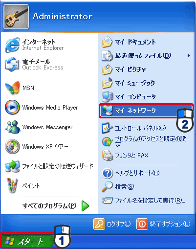 「スタート」メニューから[マイネットワーク]をクリックします。