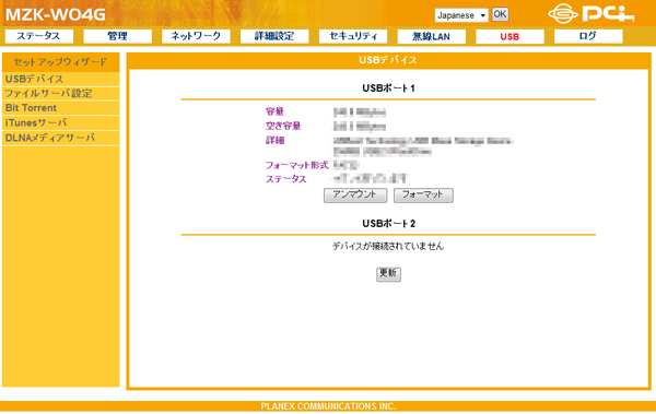 本製品のUSBポートに接続したUSBデバイスの情報を見ることができます。