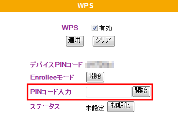 (3)無線クライアント側のPINコードを、「PINコード入力」に入力し、[開始]をクリックします。