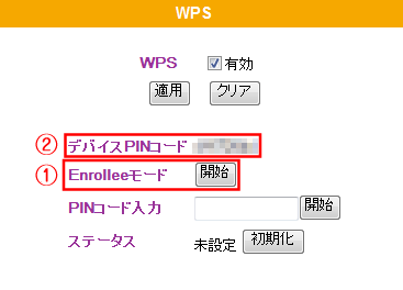 ※このときの無線クライアントは「Enrollee」に設定してください。