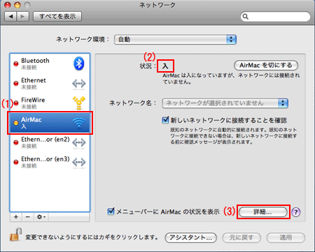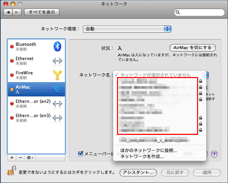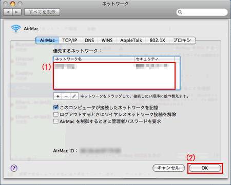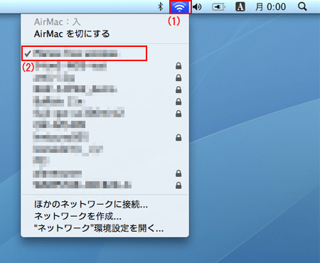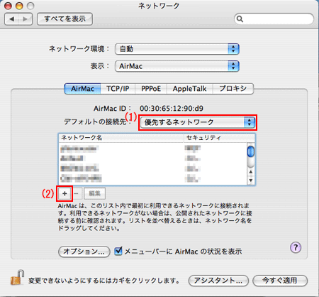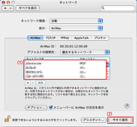 ※「ワイヤレスネットワーク」のタブが表示されないときは、OS標準以外のユーティリティなどが起動している可能性があります。そのようなときは、ユーティリティを停止してください。
