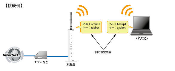 本製品に設定した同じ無線LAN設定をパソコンに設定することで通信できるようになります。