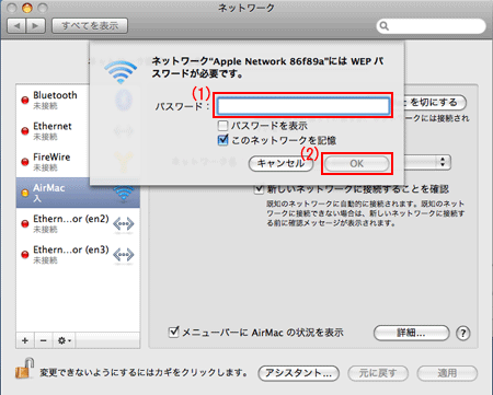 (2)「ネットワーク認証」で「オープンシステム」を選びます。