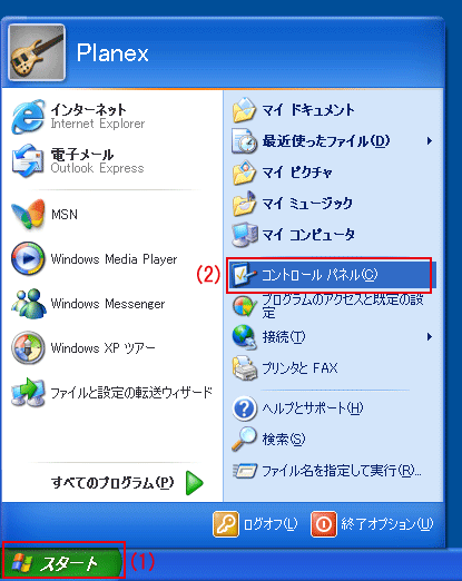 「スタート」→「すべてのプログラム」→「コントロールパネル」をクリックします。