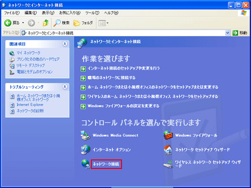 ※クラシック表示のときは、「ネットワーク接続」をダブルクリックし、 へ進んでください。
